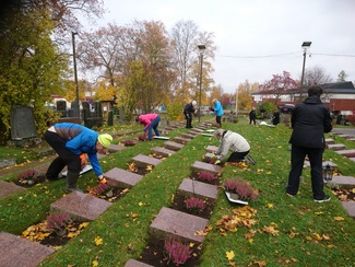 ![]() Reumaviikolla 2021 yhdistyksemme vapaaehtoisjäsenet istuttivat kanervat Laihian sankarihaudoille. |